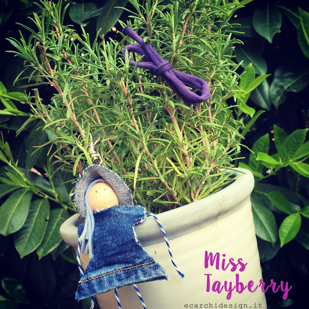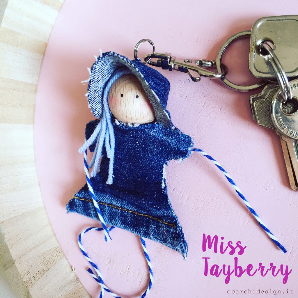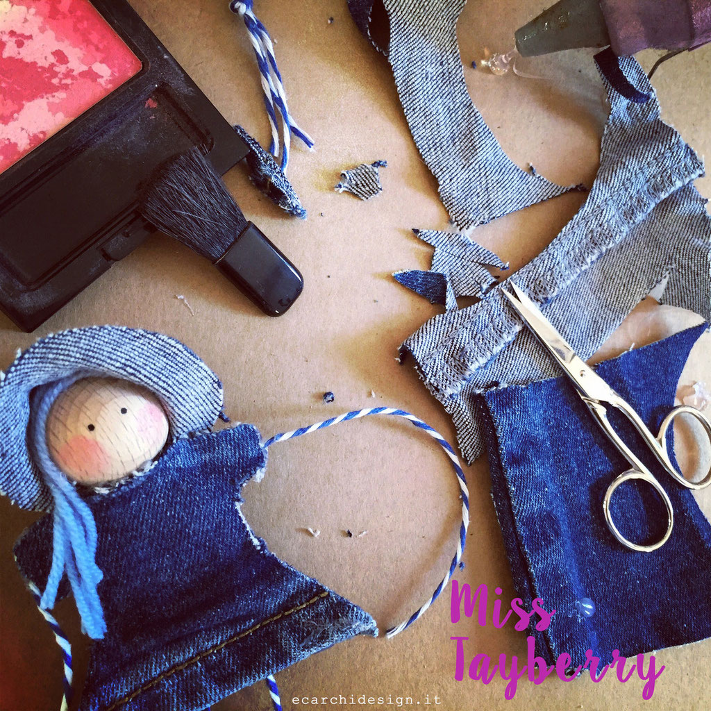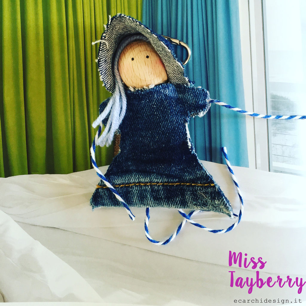 Un po' di blush sulle guance e la piccola bambolina è finita! Miss Tayberry è nata nel lab ecarchidesign tra colla legno, forbici e fantasia. Si chiama così perchè anche lei è un mix, tranquilla e dinamica al tempo stesso, con un viso tenero e le gambe ballerine. E' una ragazza moderna sempre in movimento: curiosa, le piace viaggiare, accompagnarti appesa ad una collana, seguirti mentre apri la porta di casa..... ha un'anima green e adora il contatto diretto con la natura.